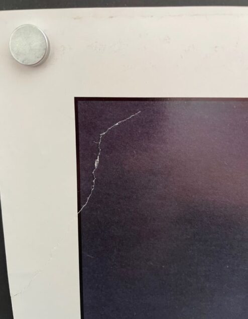 - Condition: very good, never used, mended tear top left border, few little scuffs, folded