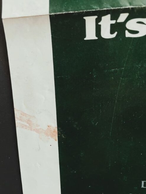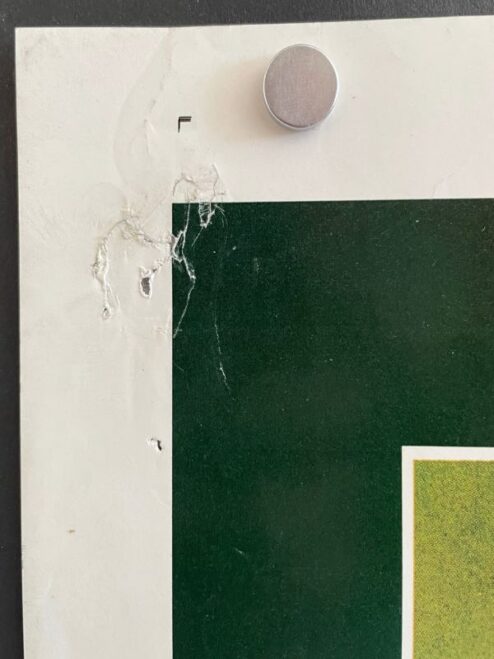 - Condition: folded, few pinholes, few scuffs, edgewear and little stain on bottom left