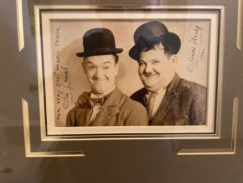signed autograph, Stan Laurel, Oliver Hardy, custom framed